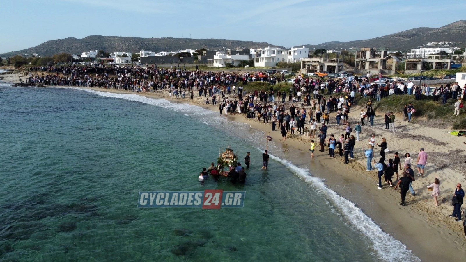 Όπως αναφέρει το cyclades24.gr, την πομπή του Επιταφίου συνόδευσαν ψαλμωδίες πιστών και οι ήχοι από το παραδοσιακό σουβλιάρι.