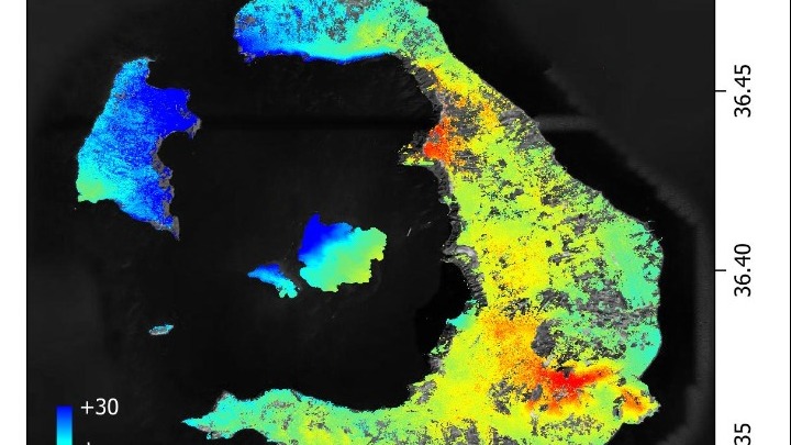 Ενδείξεις δραστηριότητας στο βόρειο τμήμα της καλδέρας της Σαντορίνης τον Ιούλιο του 2024 και εδαφική παραμόρφωση που εξελίχθηκε έως και τα τέλη του έτους δείχνουν τα πρώτα ευρήματα του ΑΠΘ με τη χρήση δορυφορικών δεδομένων ραντάρ COSMO-SkyMed σε συνεργασία με την ASI.