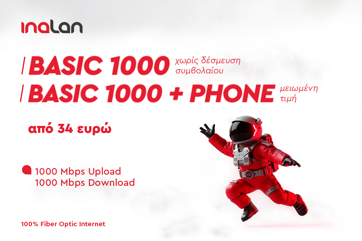 Παράλληλα, η INALAN μειώνει το κόστος στα πακέτα BASIC 1000, προκειμένου να καταστήσουν ακόμη πιο προσιτή σε κάθε νοικοκυριό την ταχύτητα του μέλλοντος!