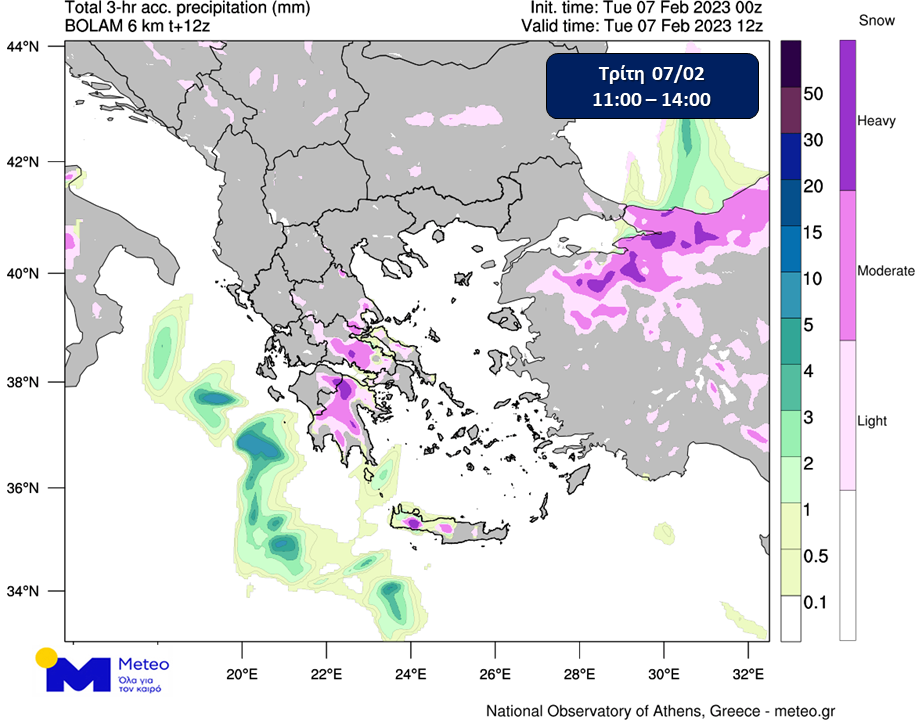 Το Έκτακτο Δελτίο Επικίνδυνων Καιρικών Φαινομένων που εκδόθηκε στις 03-02-2023/13:00 τοπική ώρα, επικαιροποιείται σύμφωνα με τα τελευταία προγνωστικά στοιχεία που αναφέρονται στην εξέλιξη του καιρού για την Τρίτη (07/02/2023) και την Τετάρτη (08/02/2023):