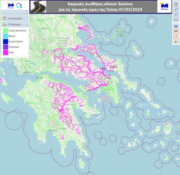 Παράλληλα, ιδιαίτερη προσοχή απαιτείται στο οδικό δίκτυο των περιοχών όπου αναμένονται οι τοπικά πυκνές χιονοπτώσεις και συγκεκριμένα στους δρόμους που επισημαίνει η υπηρεσία ROADS του Εθνικού Αστεροσκοπείου Αθηνών/Meteo.gr.