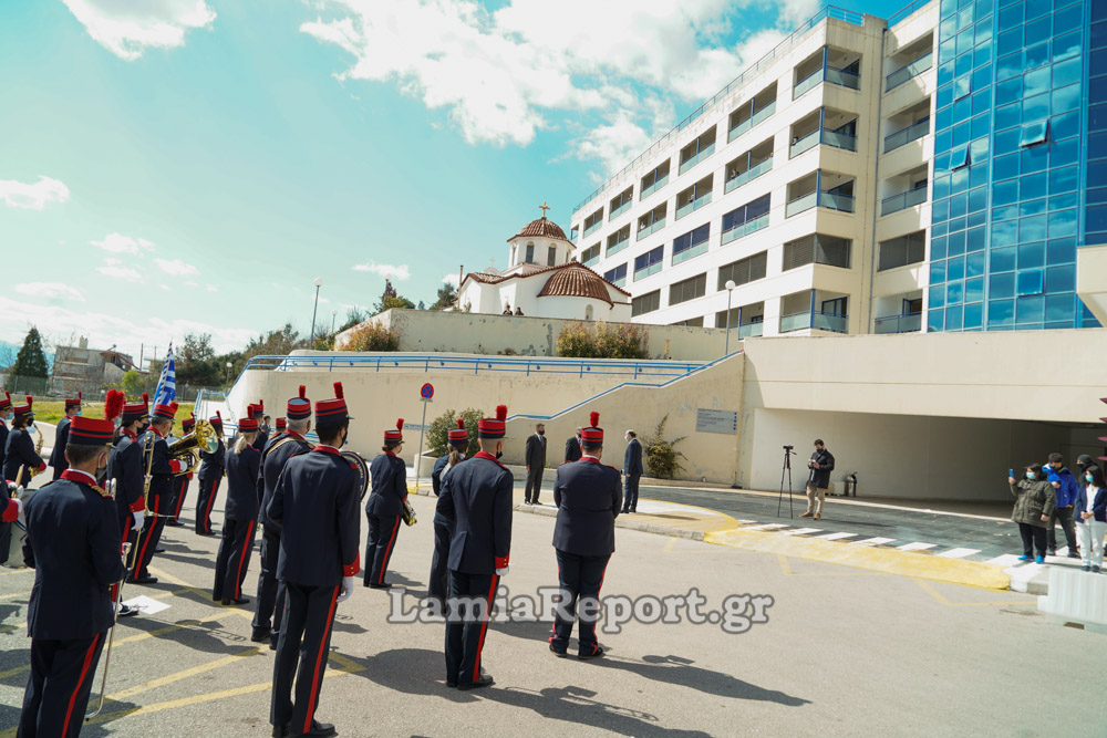 Η Δημοτική Φιλαρμονική με πρωτοβουλία του Δημάρχου Λαμιέων Θύμιου Καραΐσκου το μεσημέρι της 25ης Μαρτίου βρέθηκε στο νοσοκομείο Λαμίας για να ανεβάσει το ηθικό των Υγειονομικών μας που δίνουν μάχη στην πρώτη γραμμή, αλλά και των ασθενών, που ανεβαίνουν το δικό τους Γολγοθά, ειδικά στο “πέτρινο” κτίριο που φιλοξενεί τους ασθενείς με Covid.