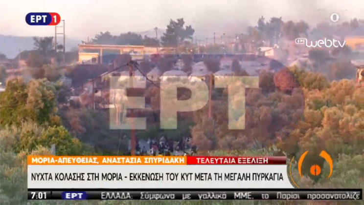 Ο καταυλισμός της Μόριας κάηκε και συνεχίζει να καίγεται σχεδόν στο σύνολο του, ενώ μεγάλος αριθμός προσφύγων και μεταναστών έχουν καταφύγει προς τα γύρω κτήματα και βουνά. Πολλοί είναι αυτοί που κατευθύνθηκαν και προς την πόλη. Μεγάλη δύναμη της αστυνομίας έχει αποκλείσει την περιοχή.