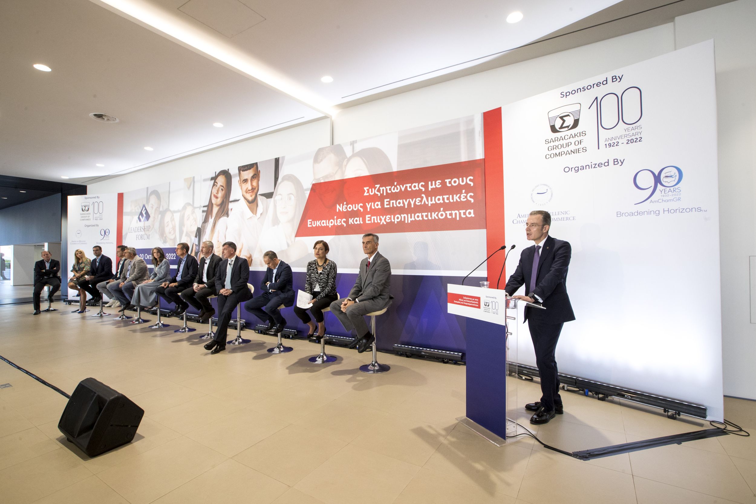 Με μεγάλη επιτυχία πραγματοποιήθηκε την Πέμπτη 20 Οκτωβρίου, η εκδήλωση Leadership Forum – “Συζητώντας με τους Νέους για Επαγγελματικές Ευκαιρίες και Επιχειρηματικότητα”, διοργάνωσης του Ελληνο-Αμερικανικού Εμπορικού Επιμελητηρίου και της Επιτροπής Ηγεσίας, και με την ευγενική χορηγία του Ομίλου Επιχειρήσεων Σαρακάκη.Ακολούθησαν οι συστάσεις και οι τοποθετήσεις κορυφαίων διευθυντικών στελεχών, παρουσιάζοντας τις επαγγελματικές ευκαιρίες, τα οράματα αλλά και τις θυσίες και τα εμπόδια που μπορούν να εμφανιστούν στη σταδιοδρομία των νέων, επισημαίνοντας ότι κάθε εξέλιξη, ευχάριστη ή δυσάρεστη, μπορεί να αποτελέσει το επόμενο βήμα στην καριέρα τους.