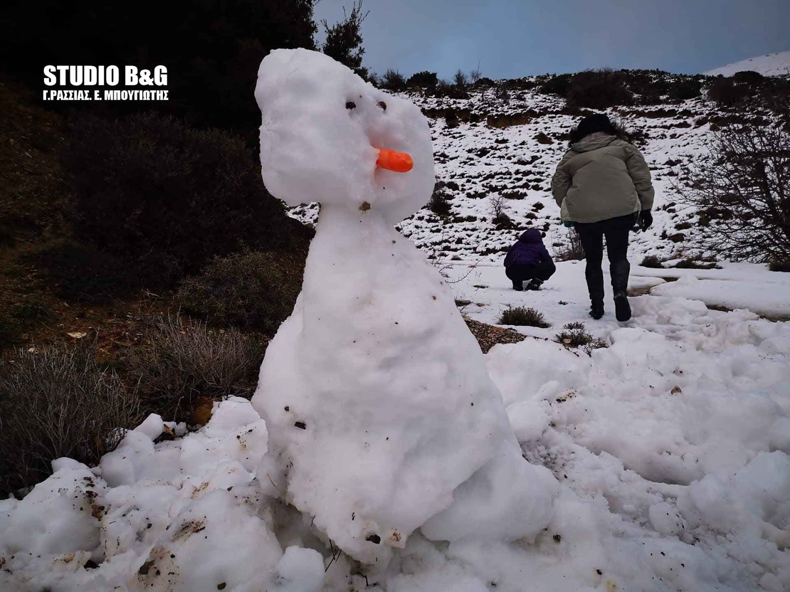 Τα χιόνια που έπεσαν στα ορεινά της Αργολίδας ηταν για πολλούς μια καλή ευκαιρία για να έρθουν σε επαφή με το χιόνι και τα παιδιά να χαρούν μια εμπειρία για τα περισσότερα πρωτόγνωρη.