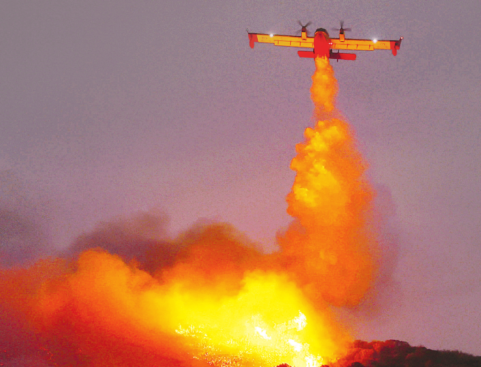 Την Παρασκευή 8 Αυγούστου, ο ήλιος έδυε στις 8:25 το βράδυ. Εκείνη την ώρα, οι φλόγες εξακολουθούσαν να καίνε στην Κερατέα, στην Ανάβυσσο και σε άλλες περιοχές της νότιας και ανατολικής Αττικής. Η πυρκαγιά, που προηγουμένως είχε προκαλέσει τον όλεθρο, καταστρέφοντας σπίτια και 15.500 στρέμματα αγροτοδασικών εκτάσεων είχε ήδη περιοριστεί, ωστόσο τα πάντα προμήνυαν πως οι επίγειες δυνάμεις πυρόσβεσης θα έδιναν ολονύχτια μάχη για να αποτρέψουν μια νέα εξάπλωσή της. Και ξαφνικά, συνέβη κάτι πρωτοφανές. Στις 8:50 μ.μ. και ενώ το σκοτάδι είχε καλύψει τον αττικό ουρανό ένα Canadair 415 εμφανίστηκε πάνω από τις φλόγες πραγματοποιώντας ρίψη νερού.