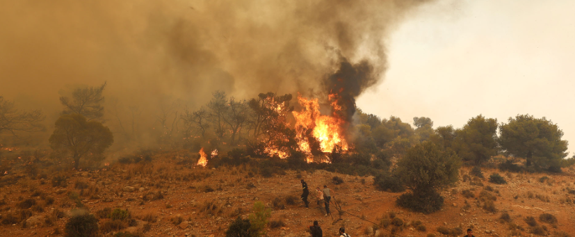 Η φωτιά έκαιγε σε ξερά χόρτα, σύμφωνα με την Πυροσβεστική.