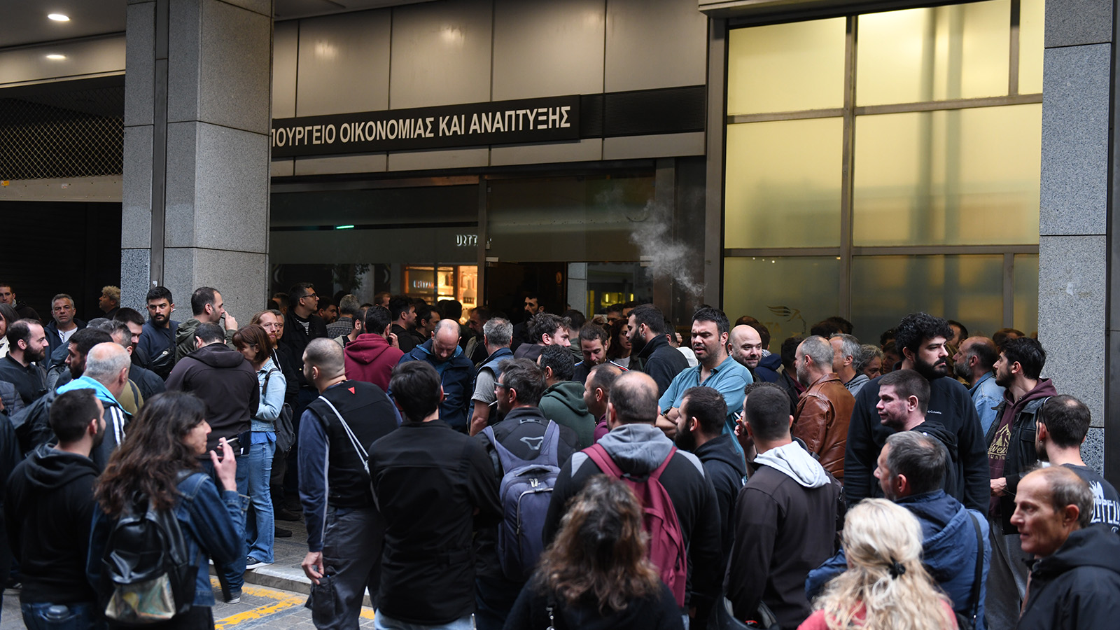 Από το πρωί σωματεία της ΛΑΡΚΟ με σωματεία της Αττικής πραγματοποιούν κινητοποίηση στο υπουργείο Οικονομικών.