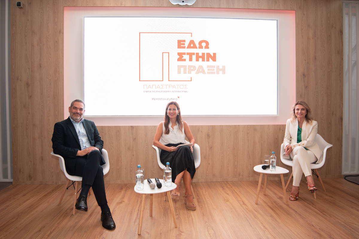 Στο πλαίσιο της συζήτησης, τα δύο στελέχη της Παπαστράτος είχαν την ευκαιρία να μιλήσουν για την αρχή της μείωση της βλάβης, ως στρατηγική που στοχεύει στη μείωση των αρνητικών συνεπειών από επικίνδυνες συμπεριφορές χωρίς να κρίνει τις ατομικές επιλογές, αποτελώντας μια σημαντική παρέμβαση για τη δημόσια υγεία. Ακολουθώντας την αρχή αυτή, η Παπαστράτος και η μητρική της εταιρεία, Philip Morris International (PMI), έχουν επενδύσει πάνω από 14 δισεκ. δολάρια, τα τελευταία 15 χρόνια, στην επιστήμη και την καινοτομία, με στόχο την ανάπτυξη καλύτερων προϊόντων από το συμβατικό τσιγάρο. Σήμερα, περισσότεροι από 1.400 επιστήμονες, από διαφορετικά πεδία, διεξάγουν έρευνα πάνω σε αυτά τα προϊόντα συμβάλλοντας στην επιστημονική τεκμηρίωσή τους. Παράλληλα, η εταιρεία διαθέτει στο χαρτοφυλάκιο των προϊόντων της μία ποικιλία διαφορετικών κατηγοριών, όπως θερμαινόμενα προϊόντα καπνού, ηλεκτρονικά τσιγάρα και σακουλάκια ή pouches νικοτίνης, δίνοντας τη δυνατότητα στους ενήλικους καπνιστές, που δεν διακόπτουν το κάπνισμα, να επιλέξουν το προϊόν που θα τους βοηθήσει να αφήσουν πίσω τους το τσιγάρο.