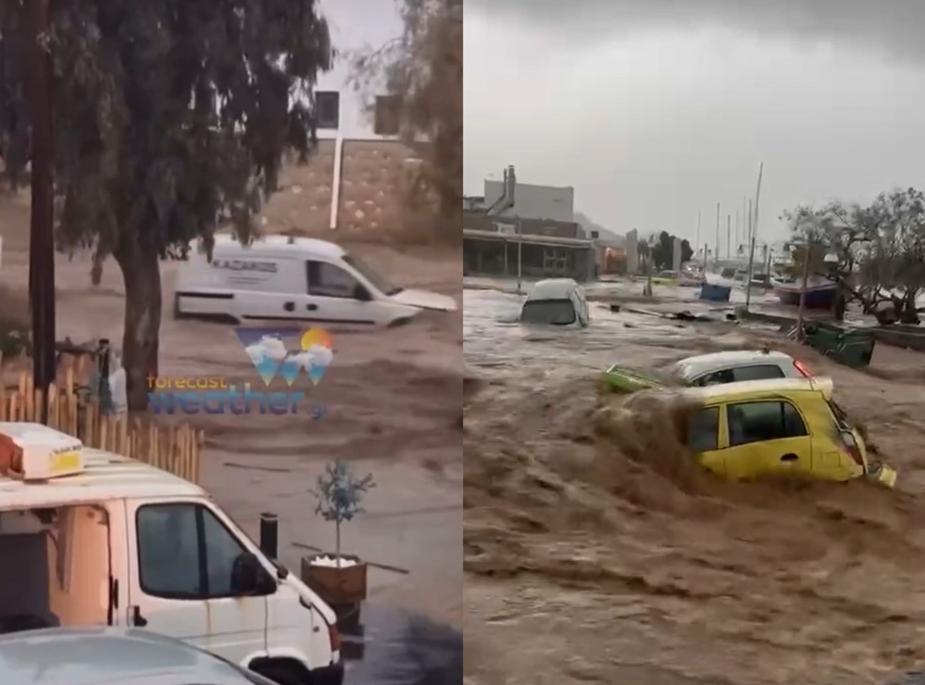 οχήματα παρασύρονται μέσα στη θάλασσα από τον ορμητικό χείμαρρο