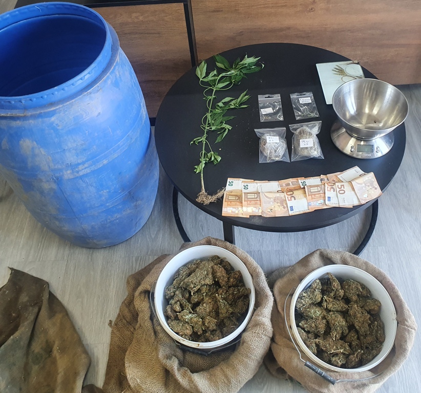 Την επόμενη ημέρα οι αστυνομικοί προχώρησαν σε έρευνα στο σπίτι του όπου βρήκαν και κατάσχεσαν περίπου 1,23 κιλά χασίς και 500 ευρώ σε μετρητά. Παράλληλα, εκεί ήταν και ο 26χρονος γιος ο οποίος επίσης συνελήφθη.