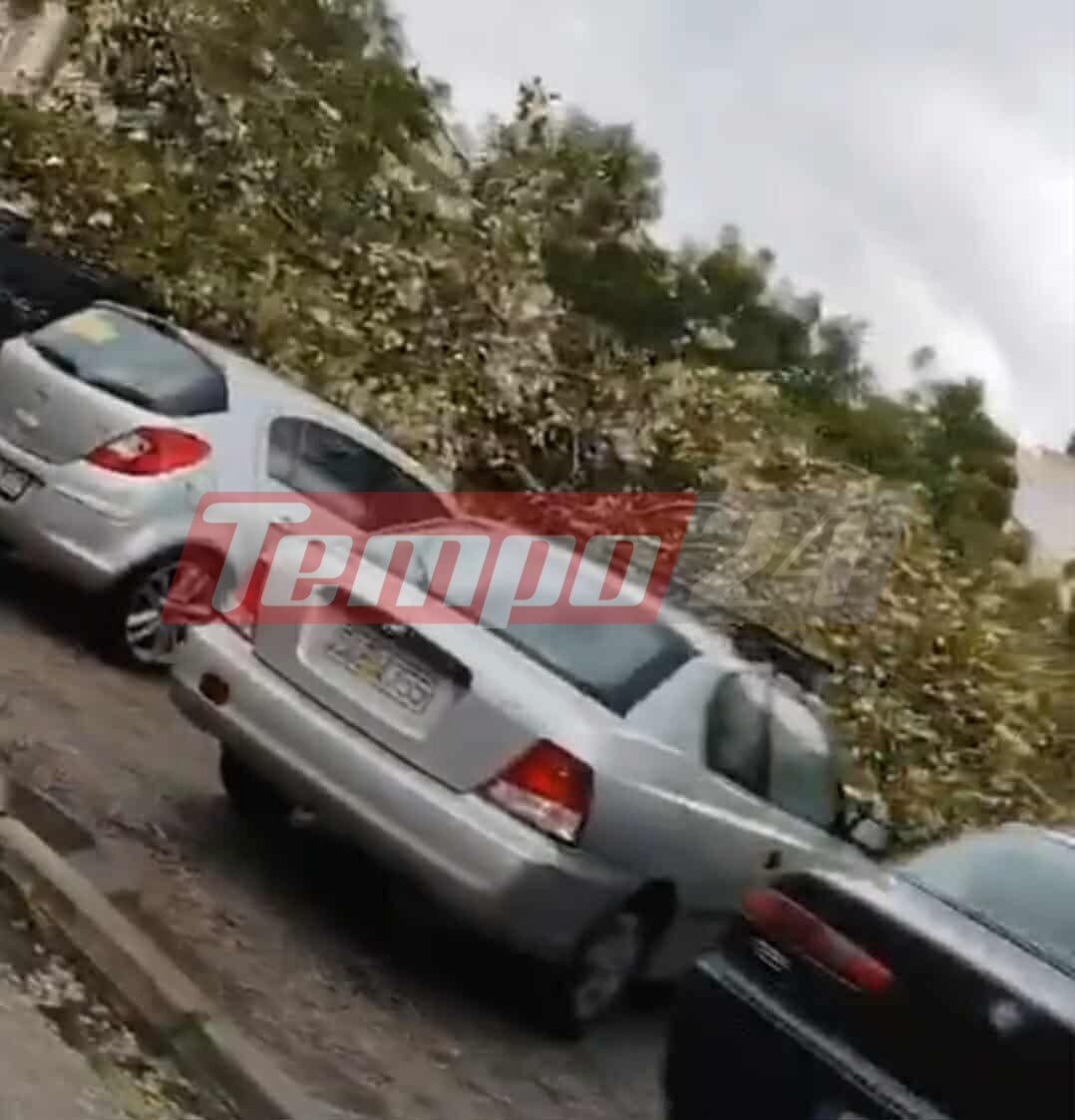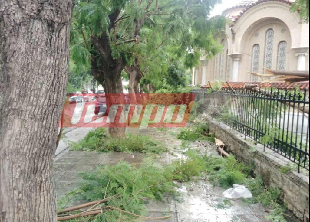 Ισχυροί άνεμοι προκάλεσαν τις μεσημβρινές ώρες πτώσεις δέντρων και ζημιές σε αυτοκίνητα, στο κέντρο της Πάτρας.