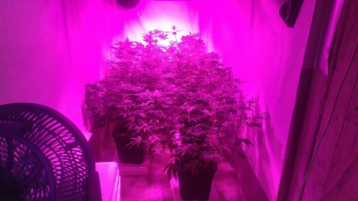 Από το σημείο κατασχέθηκαν πέντε δενδρύλλια κάνναβης και ποσότητες χασίς (περί τα 250 γραμμάρια).