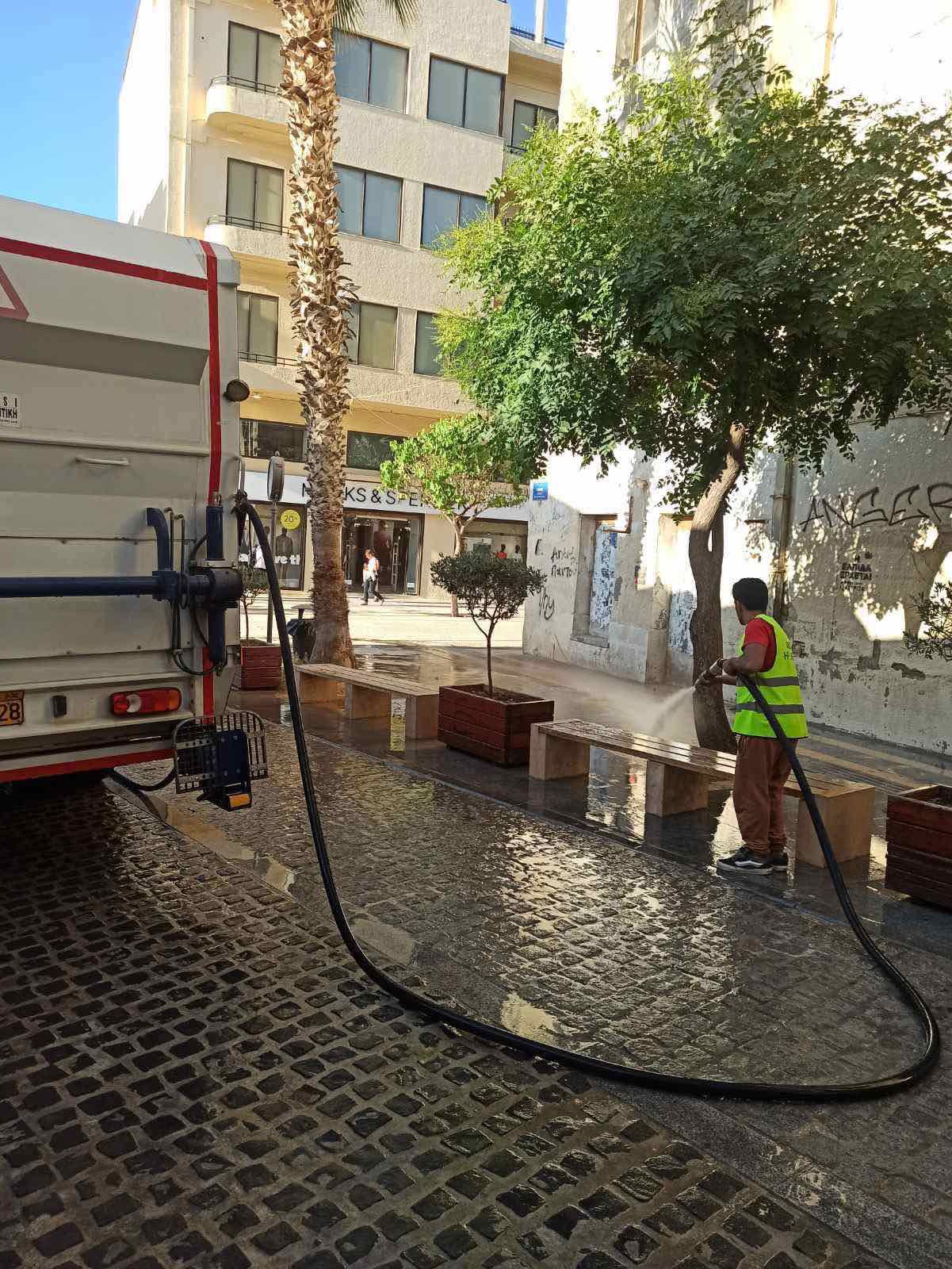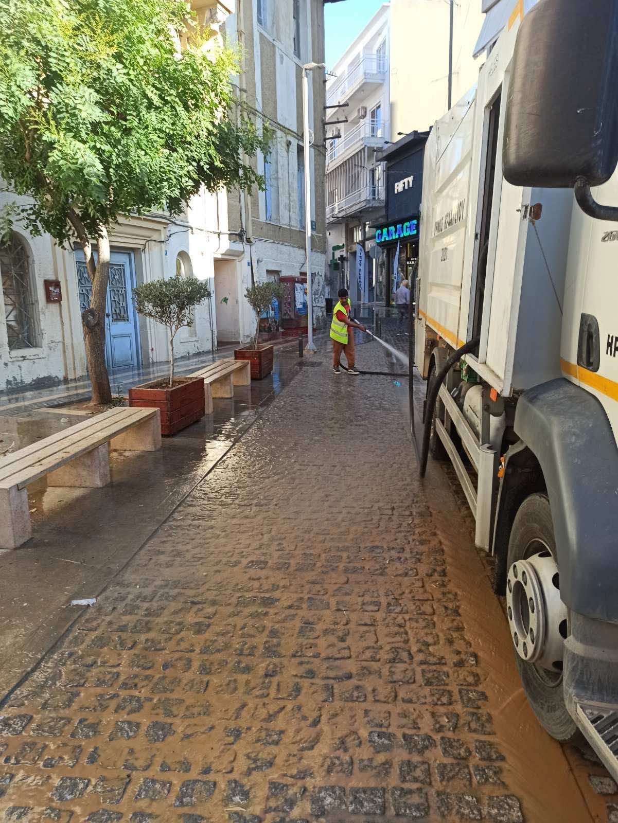 Μετά την έντονη λασποβροχή της Κυριακής, τα συνεργεία του Δήμου Ηρακλείου ξεκίνησαν τον καθαρισμό των δρόμων.