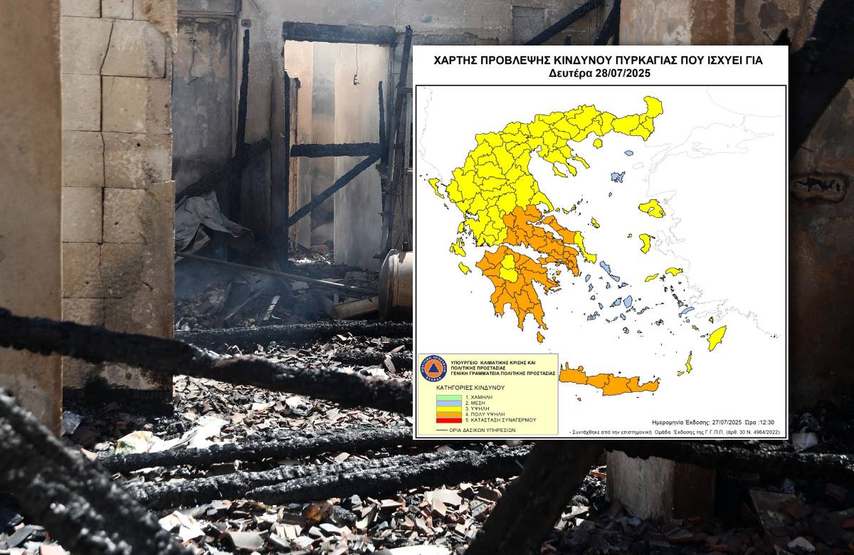 Πολύ υψηλός κίνδυνος πυρκαγιάς (κατηγορία κινδύνου 4) προβλέπεται τη Δευτέρα σε Αττική, Πελοπόννησο, Κρήτη, Στερεά Ελλάδα και στις ΠΕ Μαγνησίας, Ηλείας και Αχαΐας, σύμφωνα με το Χάρτη Πρόβλεψης Κινδύνου Πυρκαγιάς που εκδίδει η γενική γραμματεία Πολιτικής Προστασίας του υπουργείου Κλιματικής Κρίσης και Πολιτικής Προστασίας (civilprotection.gov.gr).