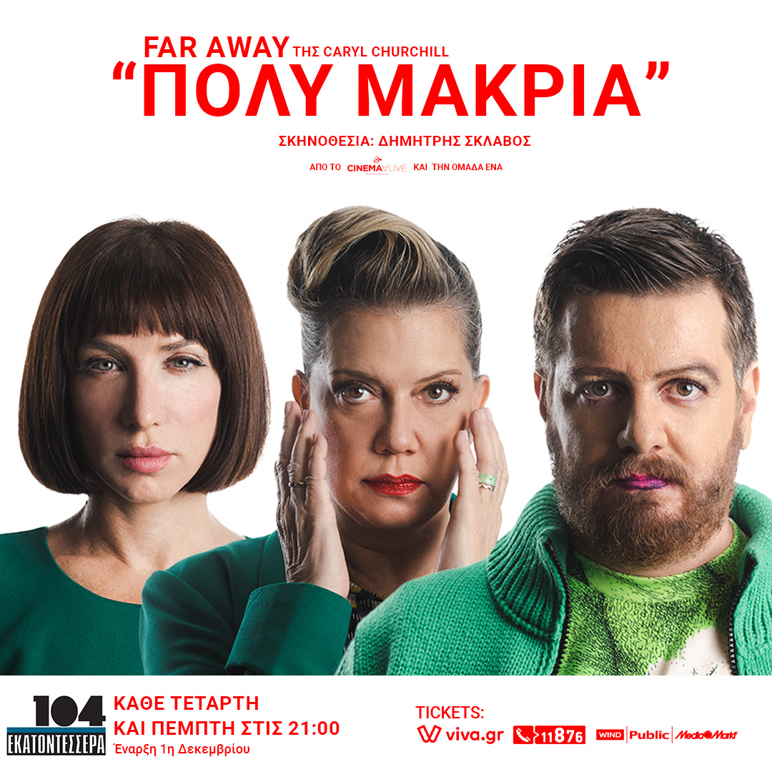 Το CinemaAlive και η Ομάδα ΕΝΑ παρουσιάζουν το “Πολύ Mακριά” σε μια νέα παράσταση που ανεβαίνει από 1η Δεκεμβρίου στο Θέατρο 104, σε σκηνοθεσία Δημήτρη Σκλάβου, με τους Σάββα Κοβλακά, Έλενα Παπαβασιλείου, Μαρίτα Τζατζαδάκη, θέτοντας τα αμείλικτα δεδομένα του έργου.