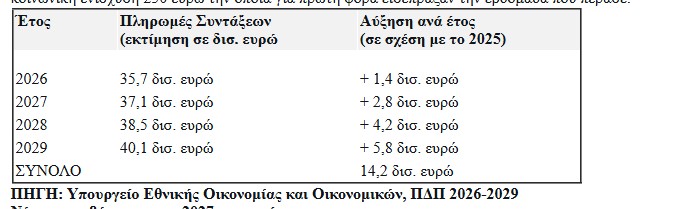 Σύμφωνα και με όσα αναφέρονται στο Πολυετές Δημοσιονομικό Πρόγραμμα 2026-2029: