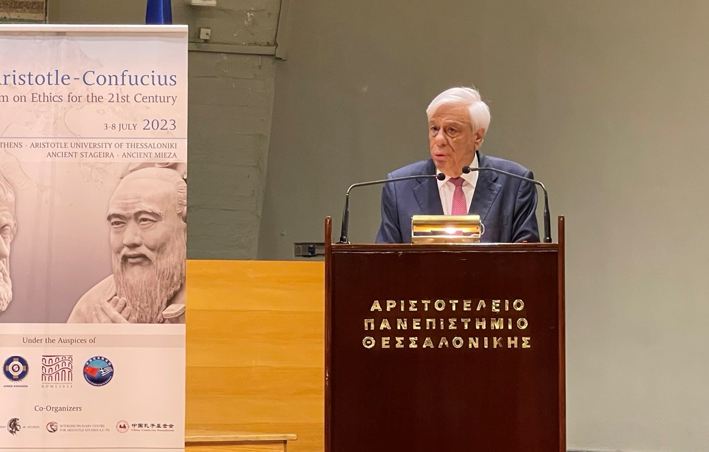 Στο Συμπόσιο που οργάνωσε το «Διεπιστημονικό Κέντρο Αριστοτελικών Μελετών» του Αριστοτελείου Πανεπιστημίου Θεσσαλονίκης για τις φιλοσοφικές «συγγένειες» Αριστοτέλους και Κομφούκιου, ο τέως Πρόεδρος της Δημοκρατίας, Ακαδημαϊκός και Επίτιμος Καθηγητής της Νομικής Σχολής του ΕΚΠΑ κ. Προκόπιος Παυλόπουλος ανέπτυξε το θέμα: «Αριστοτέλης και Κομφούκιος: Σε αναζήτηση ορισμένων κοινών φιλοσοφικών τόπων» και επισήμανε, μεταξύ άλλων, και τα εξής: