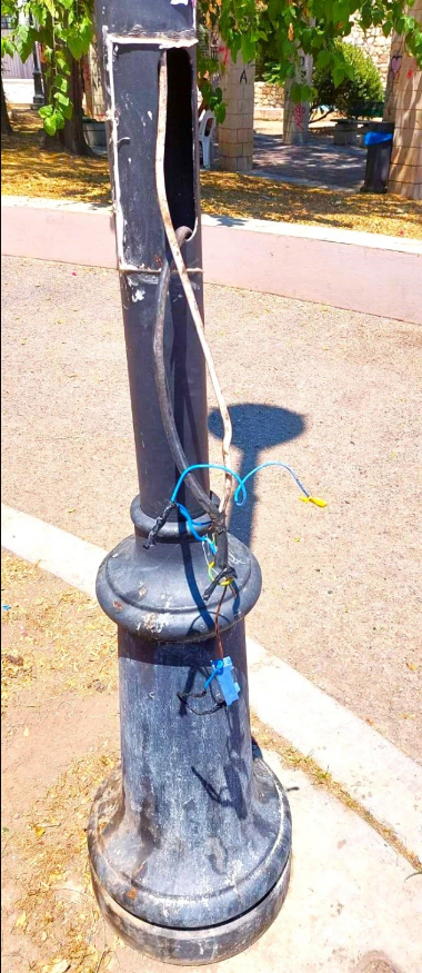 Ειδικότερα, οι δράστες προξένησαν βανδαλισμούς σε φωτιστικά, εγκαταλείποντας εκτεθειμένα ηλεκτροφόρα καλώδια που θα μπορούσαν να προξενήσουν σοβαρούς τραυματισμούς έως και ηλεκτροπληξία στους επισκέπτες και όπως επισημαίνεται, κάποιες από τις καταστροφές έγιναν σε φωτιστικά σώματα περιμετρικά της νέας παιδικής χαράς, η οποία κατασκευάστηκε από τον Δήμο και παραδόθηκε στους πολίτες προς χρήση, μόλις πριν λίγες ημέρες.