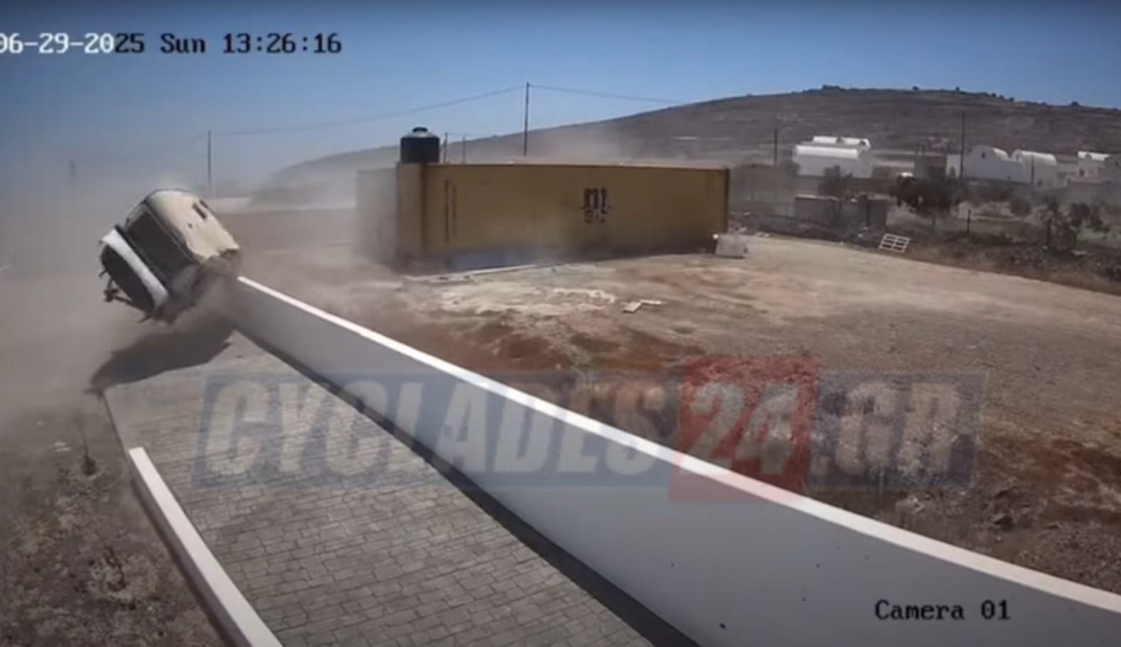 Στη Σαντορίνη, ένα εντυπωσιακό αλλά και επικίνδυνο περιστατικό σημειώθηκε το μεσημέρι της Κυριακής στο Εμπορείο, όταν οι ισχυρές ριπές ανέμου σήκωσαν κυριολεκτικά από το έδαφος ένα τροχόσπιτο, παρασύροντάς το αρκετά μέτρα μακριά. Το όχημα περιστράφηκε γύρω από τον άξονά του, πριν καταλήξει πλήρως κατεστραμμένο σε διπλανό σημείο.