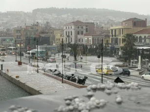 Αντίστοιχα, σφοδρή χαλαζόπτωση χτύπησε και τη Μυτιλήνη. Στην αγορά της Ερμού, οι καταστηματάρχες προσπαθούσαν με σκούπες να απομακρύνουν τα νερά που εισέβαλαν στα καταστήματά τους.