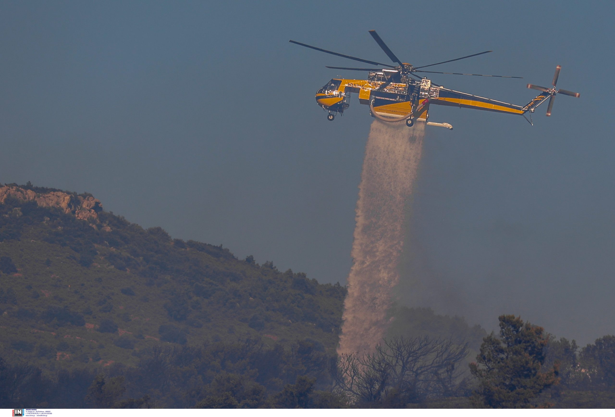 Για την κατάσβεση της φωτιάς παραμένουν και 48 οχήματα. Από αέρος επιχειρούν 17 αεροσκάφη και 7 ελικόπτερα. Συνδράμουν εθελοντές, δασοκομάντος, υδροφόρες ΟΤΑ.