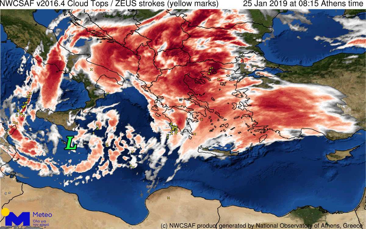 Κατά το υπόλοιπο της Παρασκευής 25/01 αναμένεται να συνεχίσουν οι βροχές, οι οποίες κατά τόπους θα είναι ισχυρές, ενώ θα εκδηλωθούν και καταιγίδες κυρίως σε θαλάσσιες και παράκτιες περιοχές. Χιονοπτώσεις θα σημειωθούν στα βόρεια ορεινά. Τα φαινόμενα στην Ήπειρο, τη Θεσσαλία και τη Δυτική Μακεδονία θα εξασθενήσουν σημαντικά από το απόγευμα. Οι άνεμοι στο Αιγαίο θα πνέουν από νότιες και νοτιοδυτικές διευθύνσεις έως 9 μποφόρ, με πολύ υψηλό κυματισμό, ενώ στο Ιόνιο από βορειοδυτικές διευθύνσεις έως 7 μποφόρ. Η θερμοκρασία δεν θα παρουσιάσει αξιόλογη μεταβολή. Επιπρόσθετα, μεγάλη συγκέντρωση αφρικανικής σκόνης θα παρατηρηθεί στη Νότια Ελλάδα (Χάρτης 3), κυρίως στην Κρήτη όπου θα σημειωθούν και λασποβροχές.