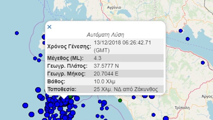 Το Ευρωμεσογειακό Σεισμολογικό Κέντρο υπολογίζει τον σεισμό στα 4,9 Ρίχτερ. Το επίκεντρο του σεισμού ήταν 30 χλμ νοτιοδυτικά της Ζακύνθου, ενώ το εστιακό βάθος ήταν 10χλμ.