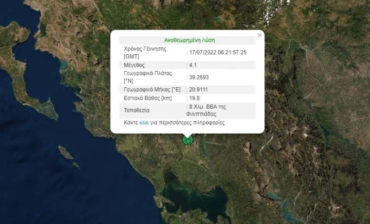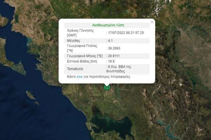 Σεισμός 4,1 Ρίχτερ σημειώθηκε το πρωί της Κυριακής στη Φιλιππιάδα Πρεβέζης.