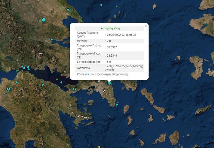 Ο σεισμός είχε επίκεντρο το Μαραθώνα και συγκεκριμένα 4χλμ δυτικά βορειοδυτικά της Νέας Μάκρης.