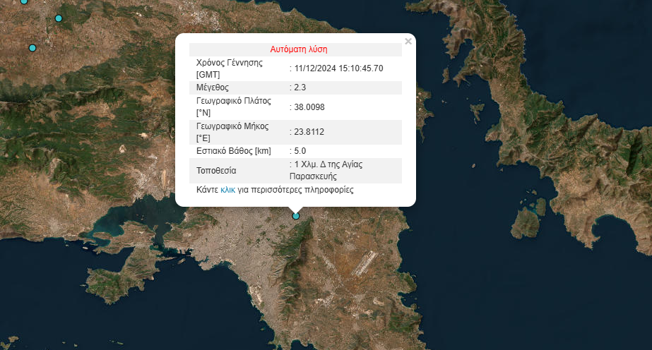 Ασθενής σεισμική δόνηση στην Αθήνα το απόγευμα της Τετάρτης 11/12.