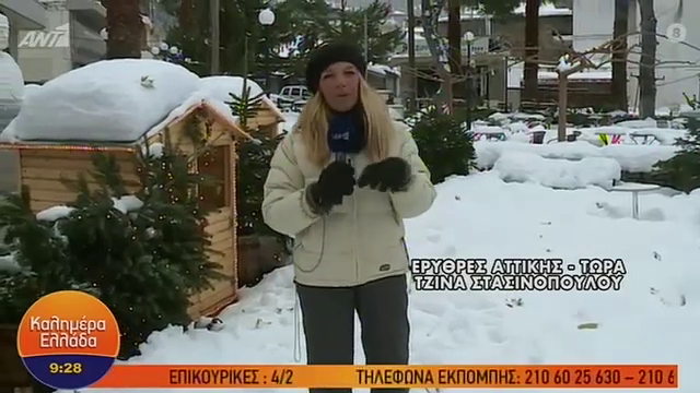 Η έντονη χιονόπτωση που έφερε χθες το βράδυ ο «Ηφαιστίων» έντυσε στα «λευκά» τις Ερυθρές Αττικής.