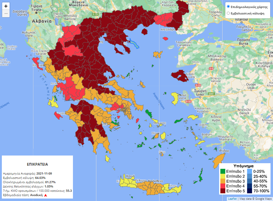 Ο επιδημιολογικός χάρτης θα παράγεται εβδομαδιαίως σε επίπεδο Περιφερειακής ενότητας και ειδικά για τα νησιά σε επίπεδο Δήμου.