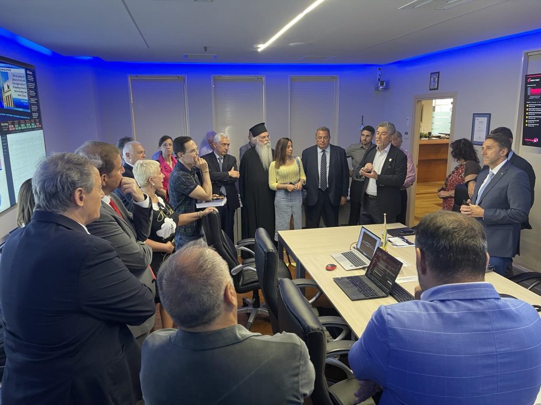 Οι φιλοξενούντες, καπετάν-Παναγιώτης Τσάκος και Δρ. Νικόλαος Τσάκος, προσέφεραν μια μοναδική ξενάγηση σε ένα πρωτοποριακό διεθνώς πρόγραμμα Τεχνητής Νοημοσύνης που εφαρμόζει ο Όμιλος στο τομέα της Ναυτικής Εκπαίδευσης και της Ελληνικής Ναυτιλίας.