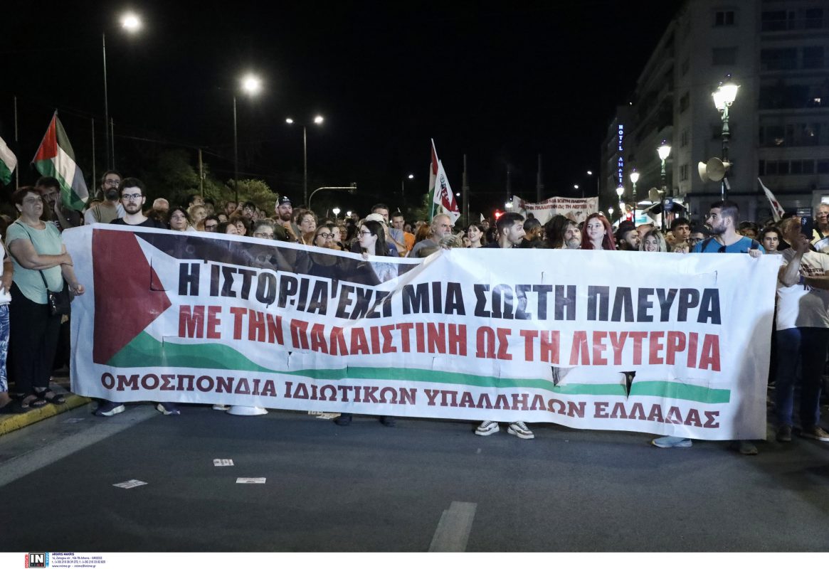 Με κεντρικό σύνθημα «Η Ιστορία έχει μια σωστή πλευρά, με την Παλαιστίνη ως τη Λευτεριά» έγιναν την Κυριακή συγκεντρώσεις για την Παλαιστίνη στο Σύνταγμα και σε πολλές πόλεις σε όλη την Ελλάδα.
