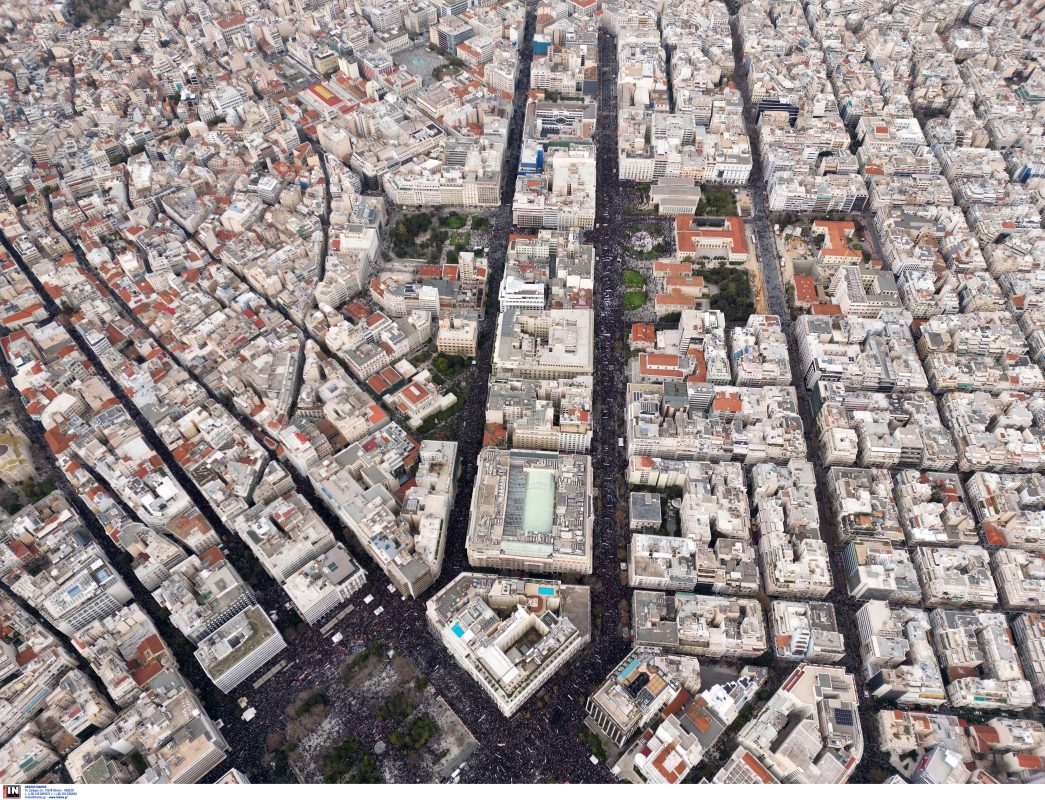 Πανοραμικές φωτογραφίες δείχνουν το πλήθος κόσμου παρευρέθηκε στο Σύνταγμα, από νωρίς το πρωί της Παρασκευής, για να τιμήσει την μνήμη των 57 θυμάτων.