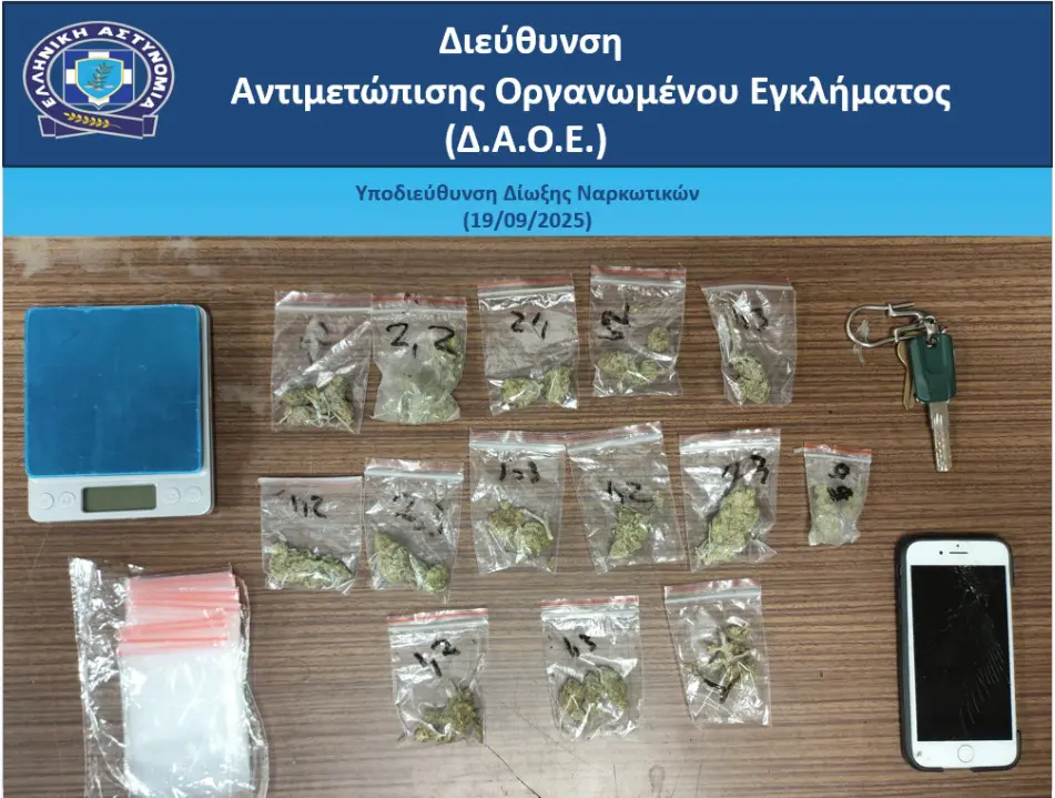 Από την Υποδιεύθυνση Δίωξης Ναρκωτικών της Διεύθυνσης Αντιμετώπισης Οργανωμένου Εγκλήματος, συνελήφθη χθες Παρασκευή 19 Σεπτεμβρίου 2025, σε περιοχή της Δυτικής Αττικής ανήλικος ημεδαπός κατηγορούμενος για κατοχή και διακίνηση ναρκωτικών ουσιών.