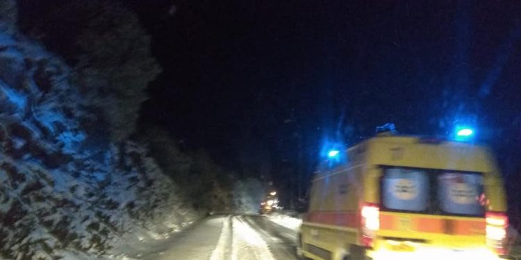 Με συνοδεία εκχιονιστικού έγινε η μεταφορά ασθενή με ασθενοφόρο του ΕΚΑΒ στο Οροπέδιο Λασιθίου.