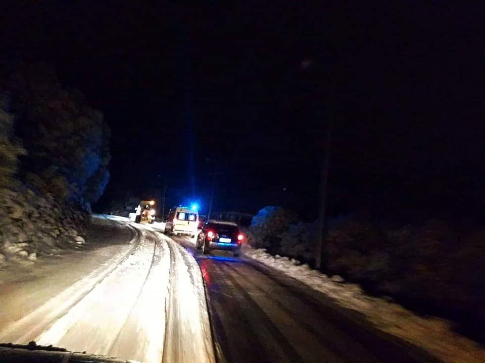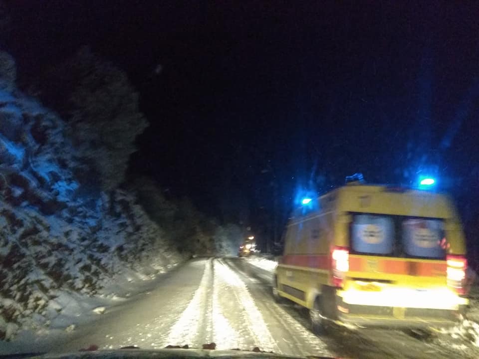 Μόλις ενημερώθηκαν οι αρχές για την μεταφορά του ασθενή αμέσως εκχιονιστικό του δήμου «μπήκε» μπροστά από το ασθενοφόρο κι άνοιγε τον δρόμο.