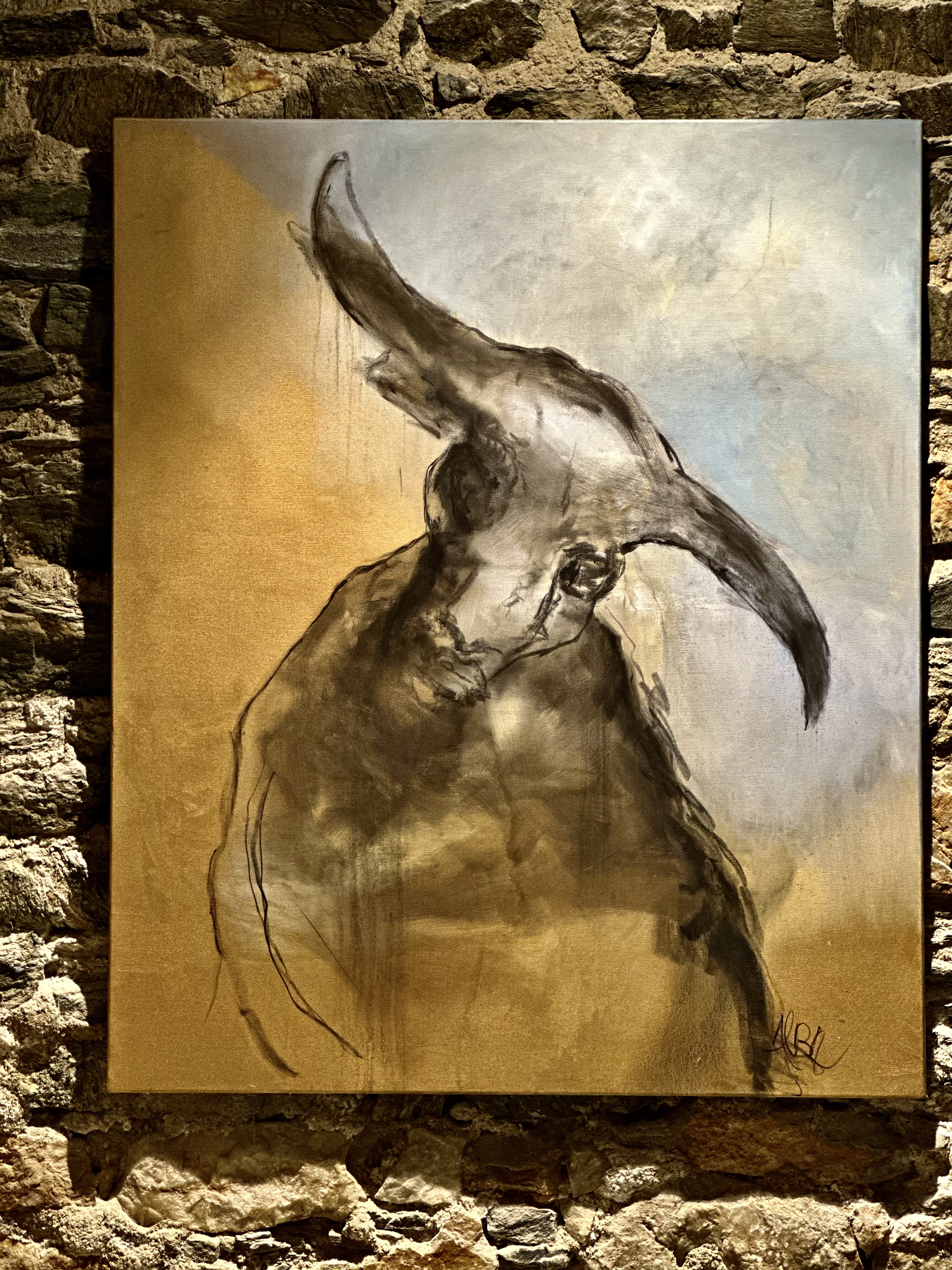 Πίνακες μεγάλου μεγέθους που απεικονίζουν τον ταύρο στη μυθική του υπόσταση, ελαιογραφίες μέσα στις οποίες το φως καταφέρνει να κερδίσει το σκοτάδι, δημιουργούν εντύπωση και προβληματισμό στο κοινό που επισκέπτεται τον χώρο και  έχει την  ευκαιρία να τον ξεναγήσει η ίδια η εικαστικός.