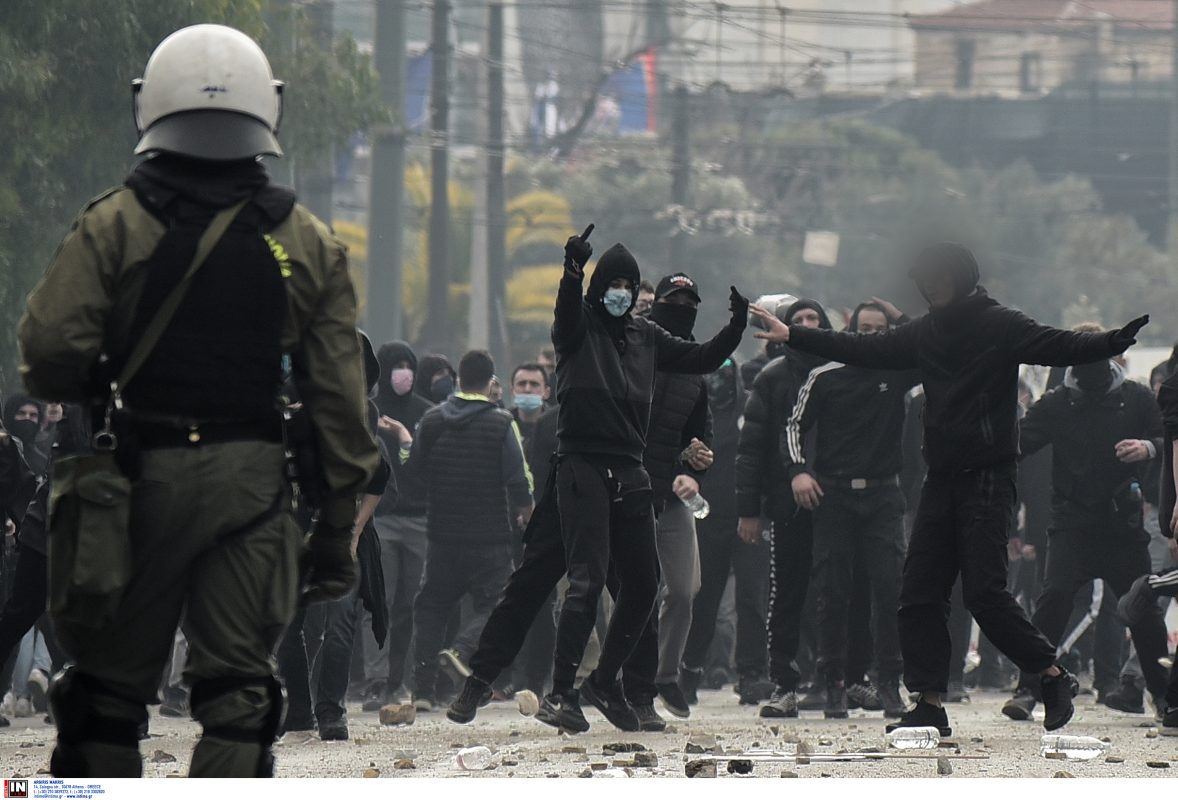 Το πλήθος του κόσμου με την έναρξη των επεισοδίων άρχισε να οπισθοχωρεί, με τους κουκουλοφόρους να παίρνουν θέσεις μάχης απέναντι από τους αστυνομικούς οι οποίοι αρχικά δεν αντέδρασαν έως ότου βρεθούν σε απόσταση ασφαλείας οι διαδηλωτές.