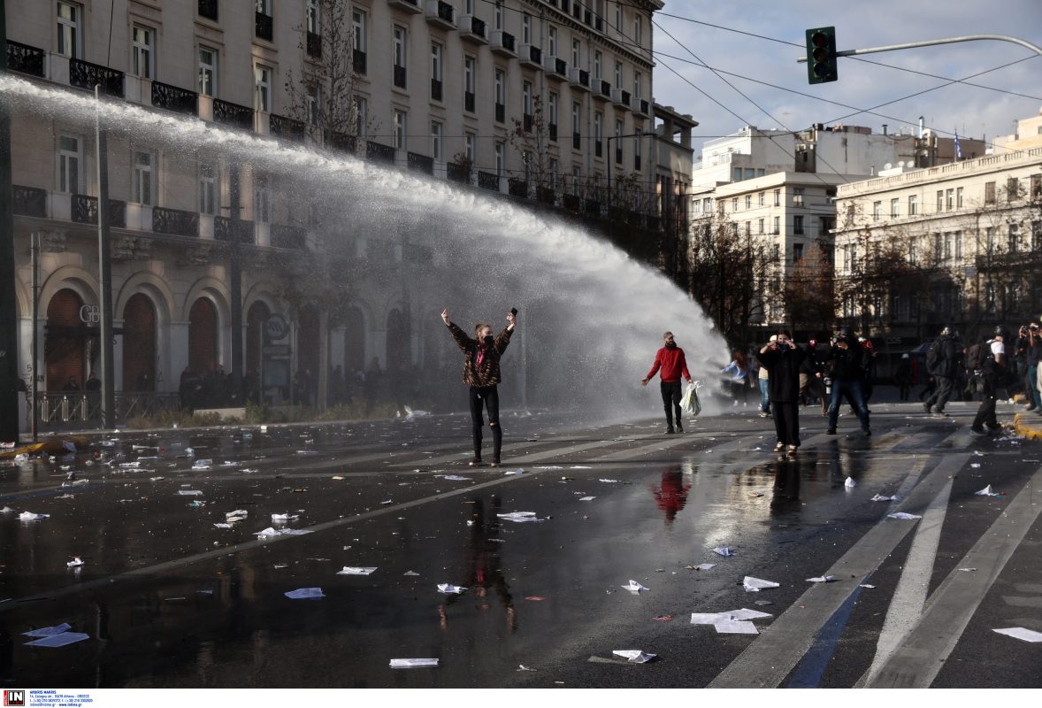Στη συνέχεια, ομάδες ατόμων άρχισαν σταδιακά να επανέρχονται προς την πλατεία Συντάγματος, απ’ όπου συνέχισαν τις επιθέσεις, εκτοξεύοντας πλήθος αντικειμένων. Οι ενέργειες αυτές δημιουργούσαν σοβαρό κίνδυνο τραυματισμού διαδηλωτών που βρίσκονταν στον χώρο και ως εκ τούτου, για τον περιορισμό της έντασης και την αποτροπή περαιτέρω επιθέσεων, έγινε χρήση και των ειδικών οχημάτων καταιονισμού ύδατος (Αίαντες).