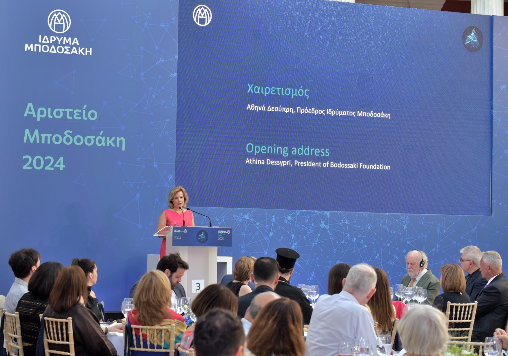 Σε μία Τελετή στο Ζάππειο Μέγαρο αφιερωμένη στην Επιστήμη απονεμήθηκε την Τρίτη 25 Ιουνίου από την Α.Ε. την Πρόεδρο της Δημοκρατίας Κατερίνα Σακελλαροπούλου το Αριστείο Μποδοσάκη 2004 στον κλάδο των Θετικών Επιστημών στη Χρύσα Κουβελιώτου, Καθηγήτρια Αστροφυσικής στο Τμήμα Φυσικής του The George Washington University και το Αριστείο Μποδοσάκη 2024 στον κλάδο των Ιατροβιολογικών Επιστημών στον Νεκτάριο Ταβερναράκη, Καθηγητή Μοριακής Βιολογίας Συστημάτων στην Ιατρική Σχολή του Πανεπιστημίου Κρήτης, Πρόεδρο του Ιδρύματος Τεχνολογίας και Έρευνας, και Πρόεδρο του European Institute of Innovation and Technology. Τα Αριστεία συνοδεύονται από χρηματικό έπαθλο €100.000 έκαστο και στη διάρκεια της Τελετής παρουσιάστηκαν οι συναρπαστικοί επιστημονικοί κόσμοι των δύο βραβευόμενων που έχουν συμβάλει καθοριστικά στην εξέλιξη της επιστήμης τους και συνεχίζουν να αποδεικνύουν με το έργο τους τις απεριόριστες δυνατότητες της ανθρώπινης σκέψης και τη δύναμη της επιστημονικής έρευνας και αριστείας.