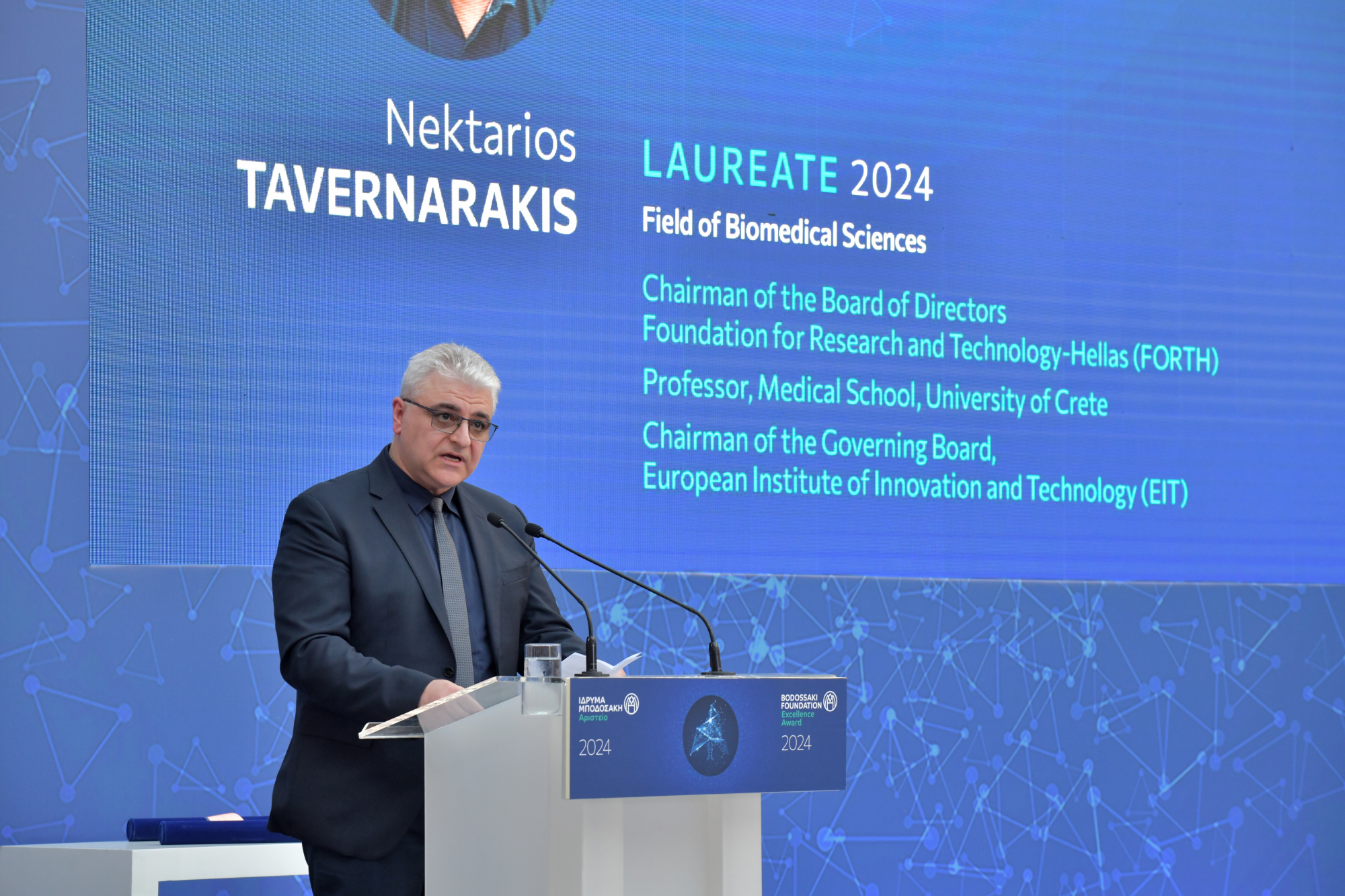 Ανάλογη ήταν και η διαπίστωση του διεθνούς φήμης Καθηγητή Frank Grosveld, Συμπροέδρου της Επιτροπής Αριστείων: «Ήταν τιμή μου να συμμετέχω στη δύσκολη διαδικασία επιλογής, διότι ο αριθμός των εξαιρετικών Ελλήνων επιστημόνων είναι πολύ μεγαλύτερος από αυτόν που θα περίμενε κανείς για το μέγεθος του ελληνικού πληθυσμού, ένα εντυπωσιακό γεγονός που επίσης αξίζει να γιορταστεί.» Αναφερόμενος στη βράβευση του Ν. Ταβερναράκη προσέθεσε: «Ο Νεκτάριος Ταβερναράκης βρίσκεται στην πρώτη γραμμή της σύγχρονης βιοϊατρικής έρευνας, ένας επιστήμονας που συνεχίζει αδιάλειπτα την έρευνα, αλλά και τη διδασκαλία στους φοιτητές της Ιατρικής του Πανεπιστημίου Κρήτης, ενώ παράλληλα διαδραματίζει κομβικό ρόλο στην ανάδειξη της ελληνικής επιστημονικής κοινότητας και παραγωγής ως Πρόεδρος του Ιδρύματος Τεχνολογίας και Έρευνας, και ως Πρόεδρος του European Institute of Innovation and Technology ».