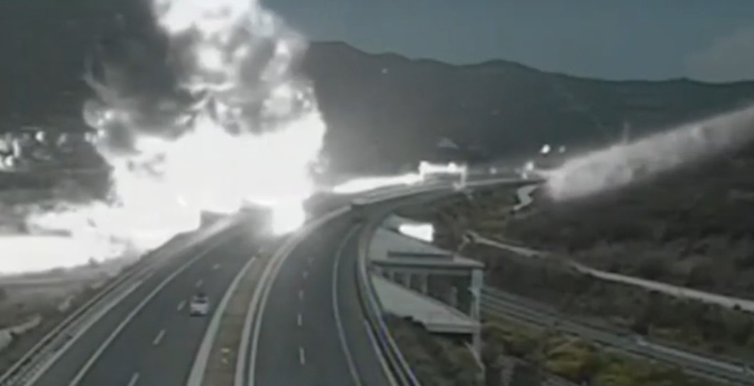 Από κάμερα της Ολυμπίας Οδού φαίνεται η έκρηξη που ακολούθησε και το μεγάλο μανιτάρι της φωτιάς.