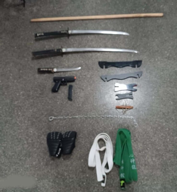 – ένα (1) πιστόλι (ρέπλικα) ελατηρίου που εκτοξεύει πλαστικές μπίλιες,