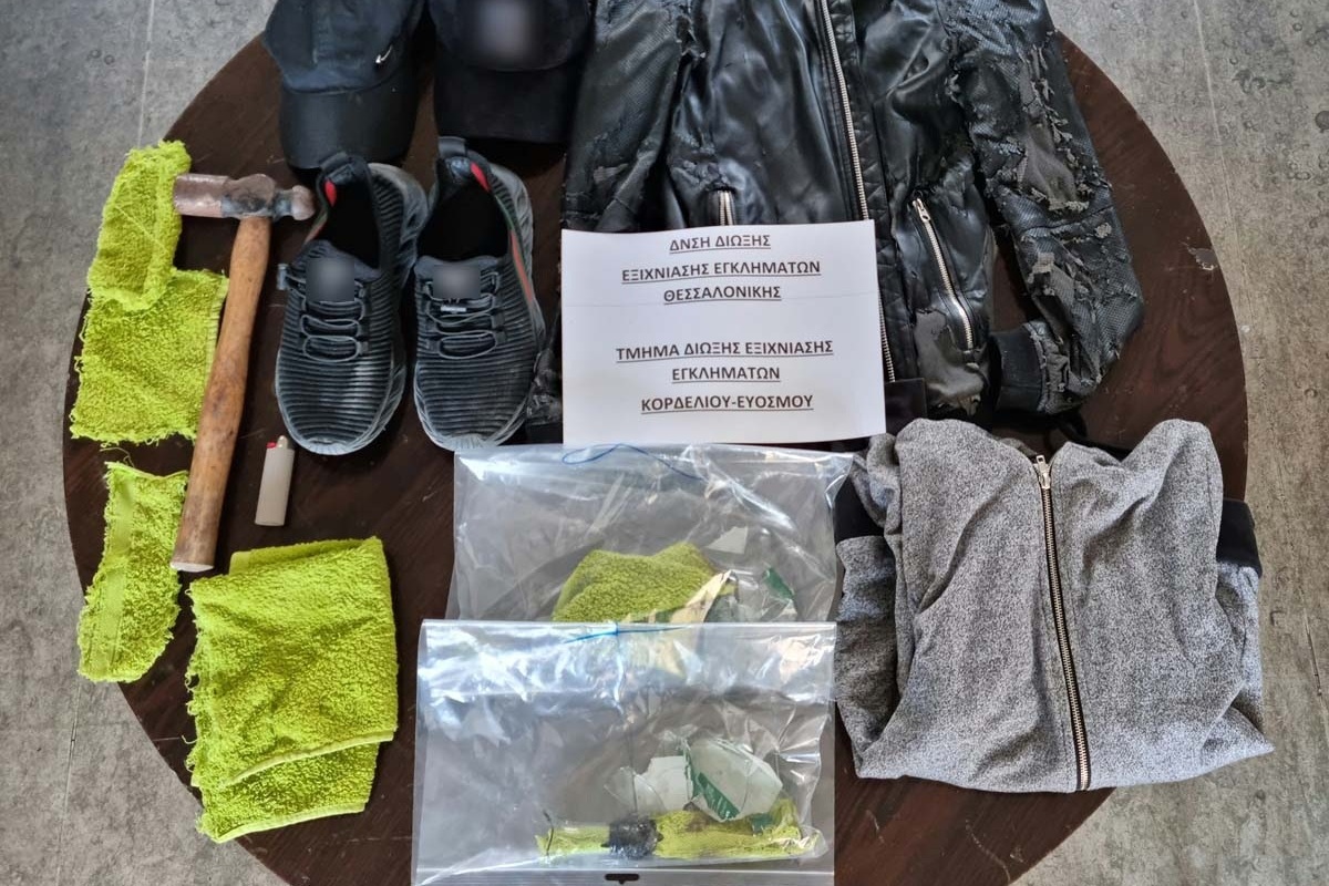 Σε έρευνα που έγινε στο σπίτι του συλληφθέντα, παρουσία δικαστικού λειτουργού, βρέθηκαν και κατασχέθηκαν είδη ένδυσης και υπόδησης που φορούσε κατά την τέλεση της πράξης, όπως επίσης ένας σφυρί που φαίνεται να χρησιμοποιήθηκε για τη θραύση της κρυστάλλινης τζαμαρίας της επιχείρησης, μέσω της οποίας οι δράστες πέταξαν τις μολότοφ, αλλά και κομμάτια πανιού για την κατασκευή των αυτοσχέδιων μηχανισμών, όπως αναφέρεται σε ανακοίνωση της αστυνομίας.
