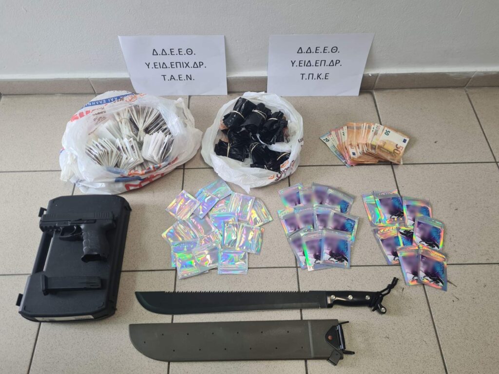 Πρόκειται για 66χρονο και 38χρονη ημεδαπούς, σε βάρος των οποίων, καθώς και σε βάρος 57χρονης ημεδαπής, σχηματίσθηκε κατά περίπτωση δικογραφία, για παράβαση του Νόμου περί εξαρτησιογόνων ουσιών και του Νόμου περί όπλων.