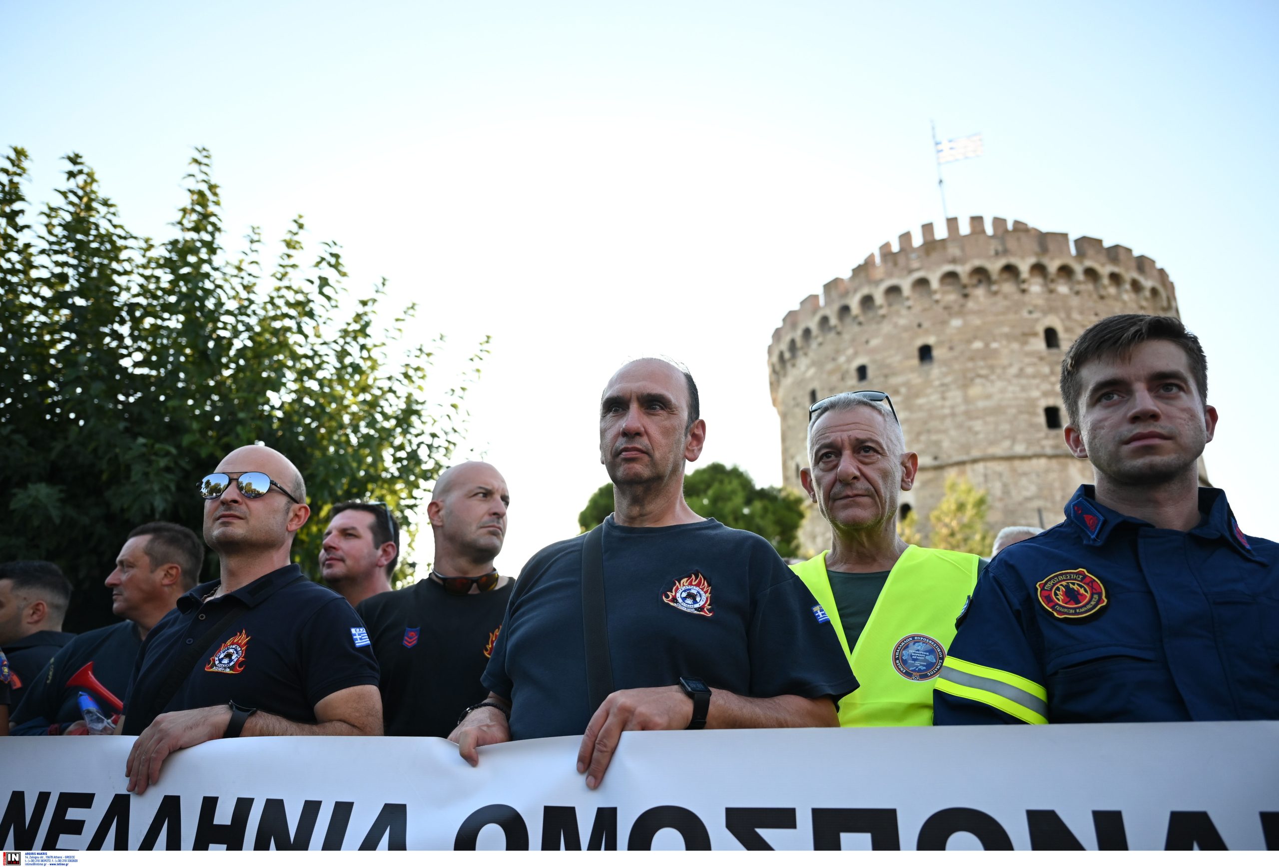 Οι ένστολοι αστυνομικοί, πυροσβέστες, λιμενικοί και στρατιωτικοί, εν ενεργεία και εν αποστρατεία συγκεντρώθηκαν στην πλατεία Λευκού Πύργου και πραγματοποίησαν διαμαρτυρία που κατέληξε στο Διοικητήριο.