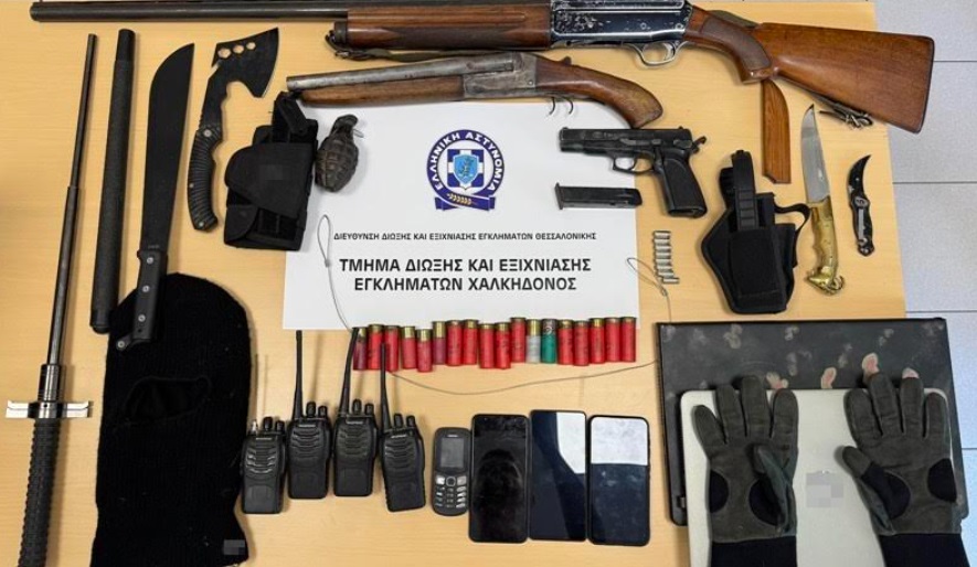 Επιπλέον, ακολούθησε έρευνα σε οίκημα – μάντρα από τους αστυνομικούς της επιληφθείσας υπηρεσίας, με τη συνδρομή του τμήματος Πρόληψης και Καταστολής της Εγκληματικότητας και του Αστυνομικού Τμήματος Χαλκηδόνος, όπου βρέθηκαν και κατασχέθηκαν μεταξύ άλλων δύο κυνηγετικά όπλα -το ένα με κομμένες κάννες, ένα πιστόλι κρότου με ένα γεμιστήρα, οκτώ φυσίγγια κρότου και δεκαοκτώ κυνηγετικά φυσίγγια, μία σιδερένια ρέπλικα αμυντικής χειροβομβίδας κενής περιεχομένου, δύο μαχαίρια, ένας σουγιάς και ένα τσεκούρι.